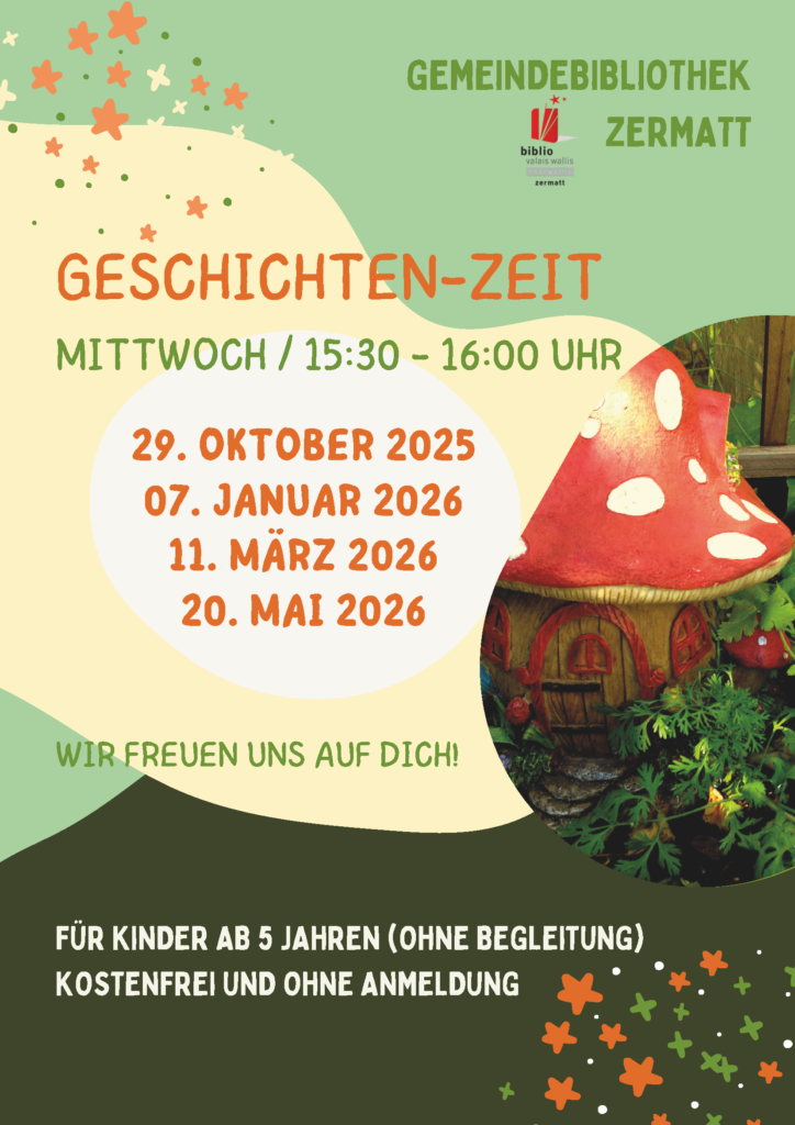 📍 Ort: Gemeindebibliothek, Bahnhofstrasse 92, 3920 Zermatt