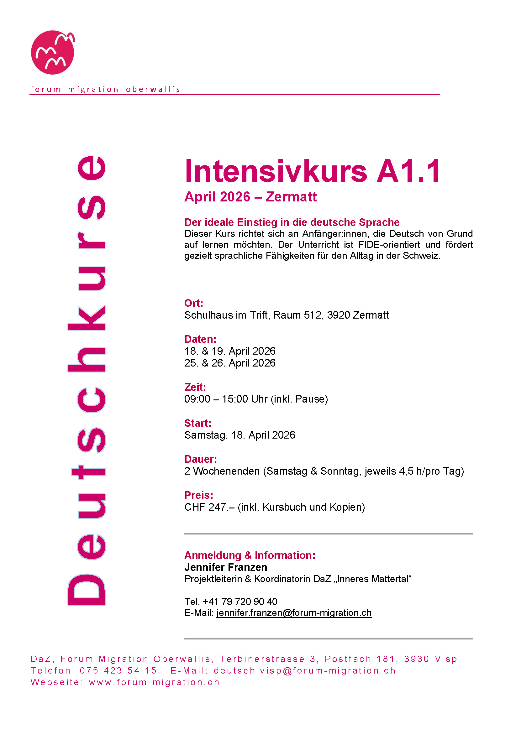 📍 Ort: Schulhaus Trift, Raum 512, 3920 Zermatt